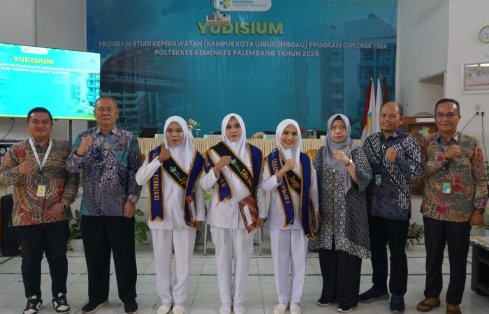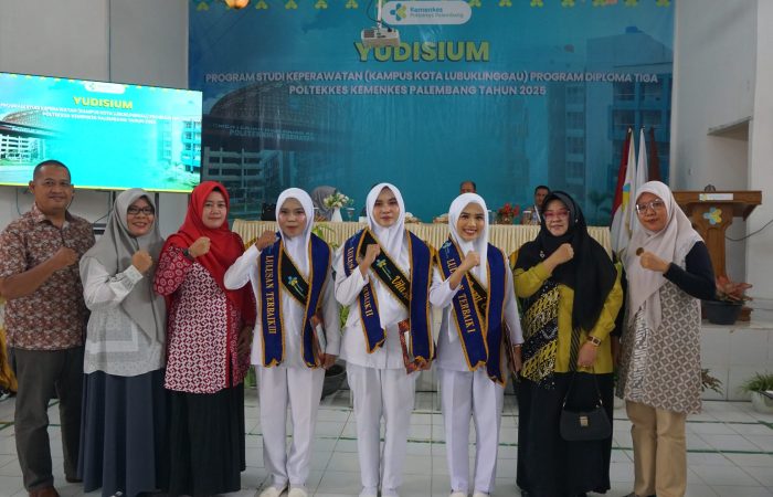 Lubuklinggau, 26 September 2025 Prodi keperawatan lubuklinggau melaksanakan Yudisium Tahun 2025 adapun Acara ini menjadi momen bersejarah bagi 81 mahasiswa yang resmi dikukuhkan sebagai lulusan, Acara yudisium yang berlangsung lancar dan aman yang dihadiri langsung oleh Direktur Poltekkes Kemenkes Palembang, Bapak H. M. Taswin, S.Si., Apt., M.M., M.Kes. Turut mendampingi jajaran pimpinan, yakni Wakil Direktur II, Ibu Dra. Ratnaningsih Dewi Astuti, M.Kes.; serta Kasubag Adak, Bapak Oktavianus BTH, S.K.M., M.M. Hadir pula Ketua Jurusan Keperawatan, Bapak Dr. Muliyadi, S.Kp., M.Kep., dan Ketua Prodi D-3 Keperawatan Lubuklinggau, Ibu Susmini, SKM.,S,Kep.,Ns.,M.Kes.